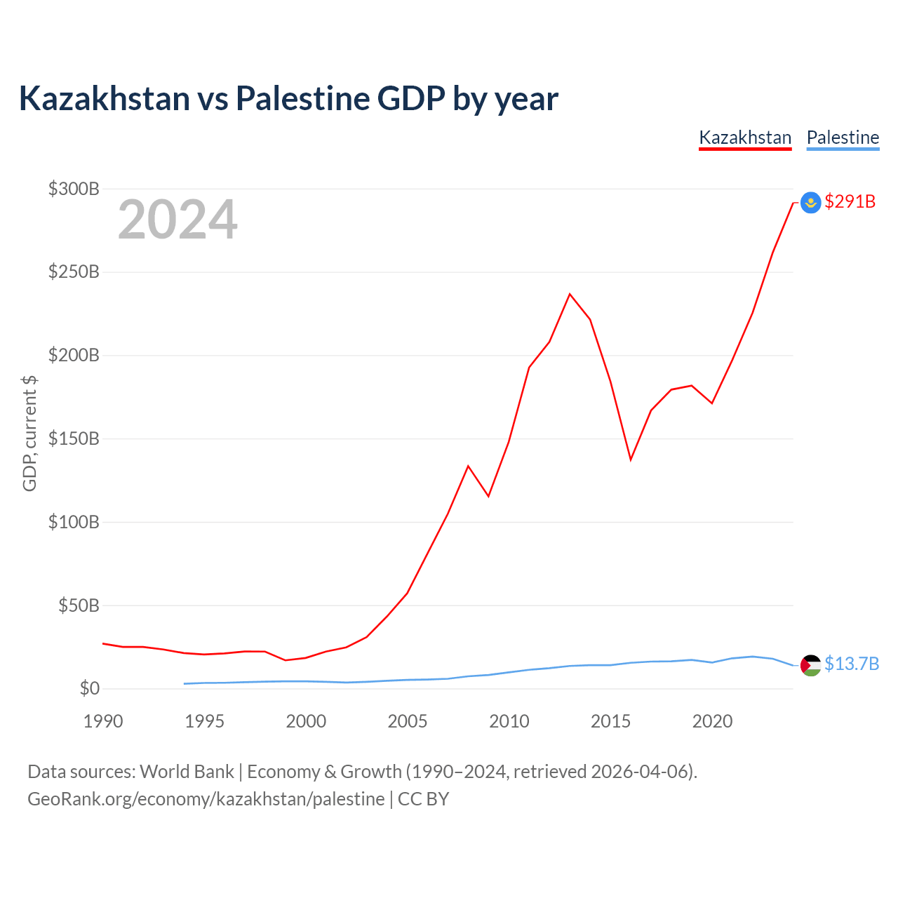Kazakhstan vs Palestine GDP by year