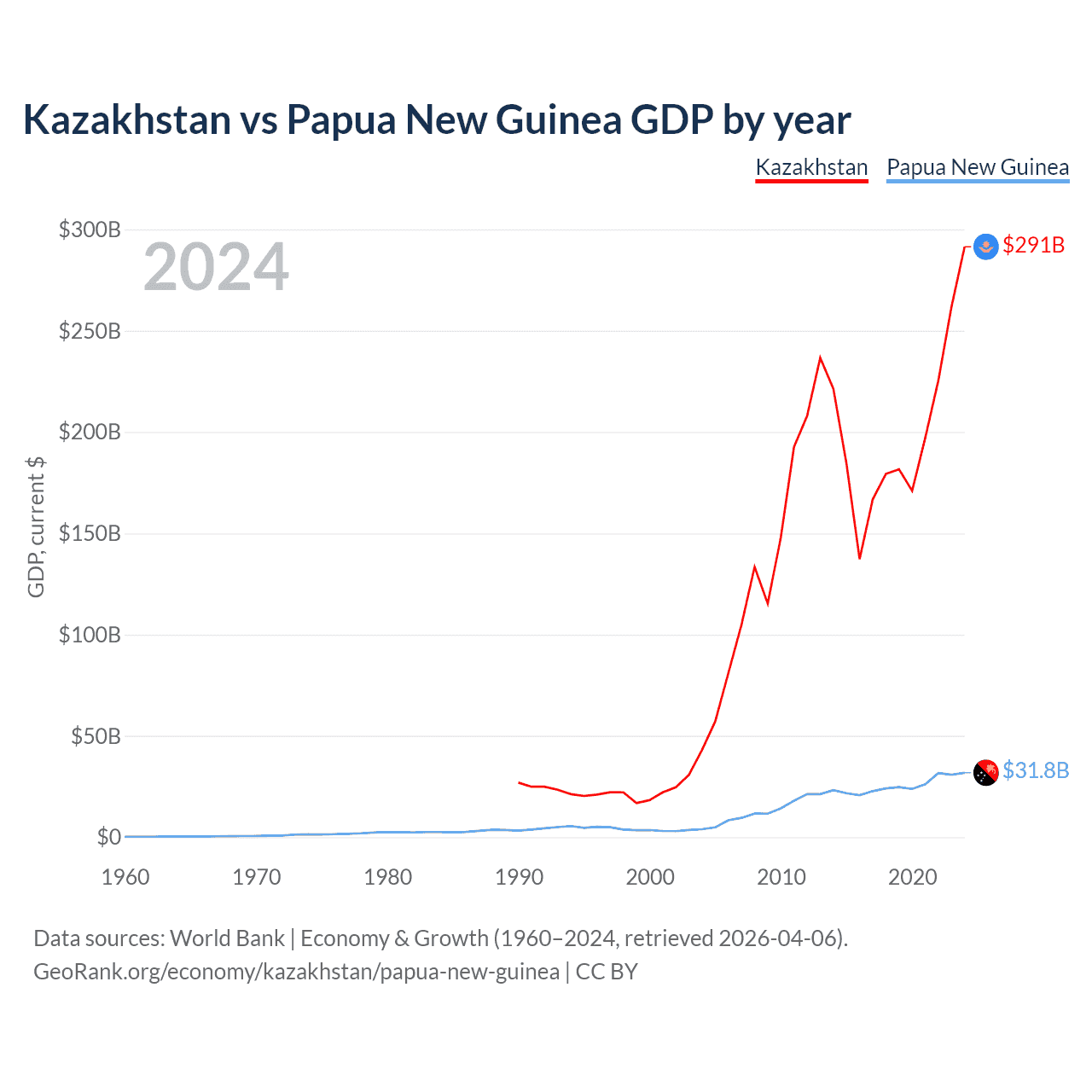 Kazakhstan vs Papua New Guinea GDP by year