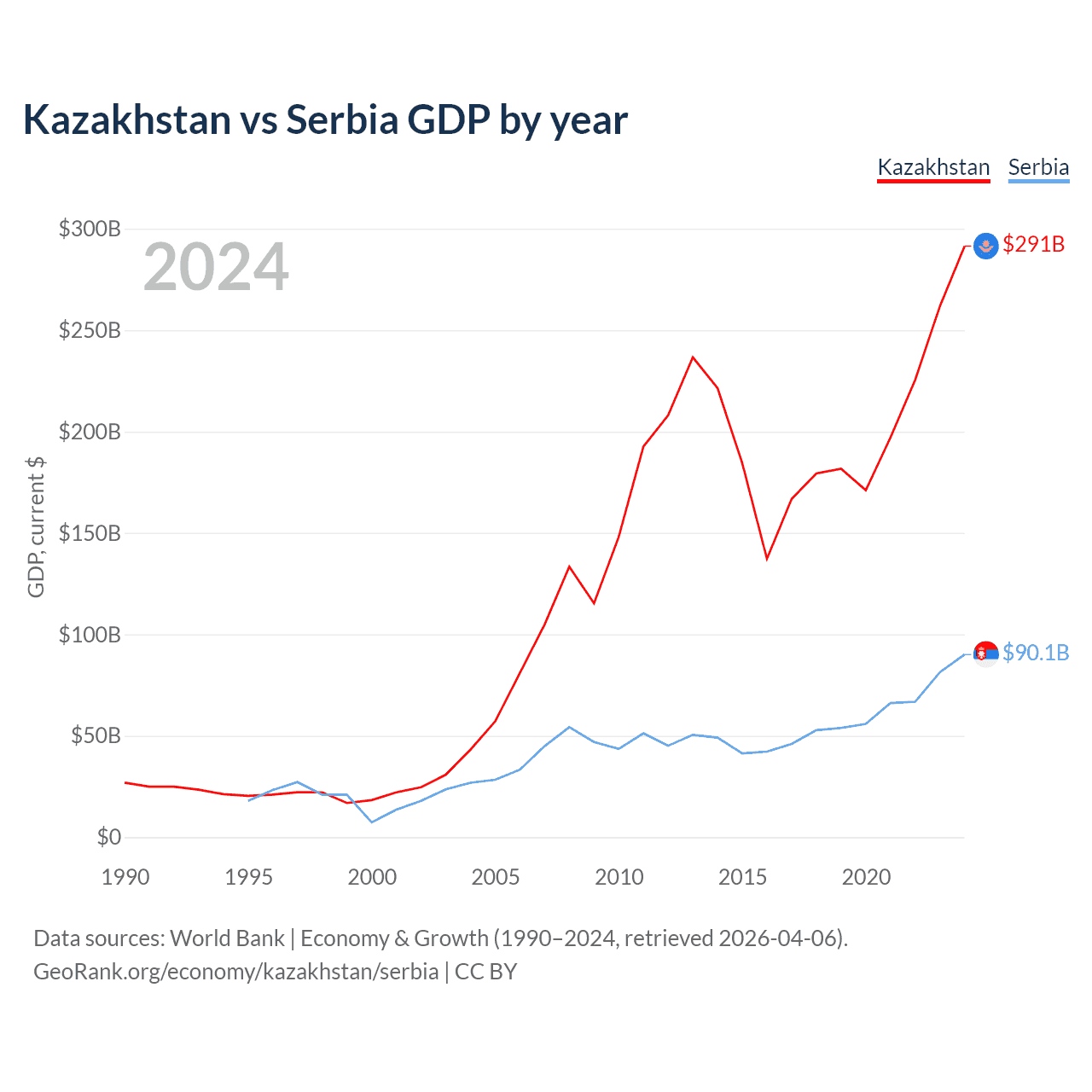 Kazakhstan vs Serbia GDP by year