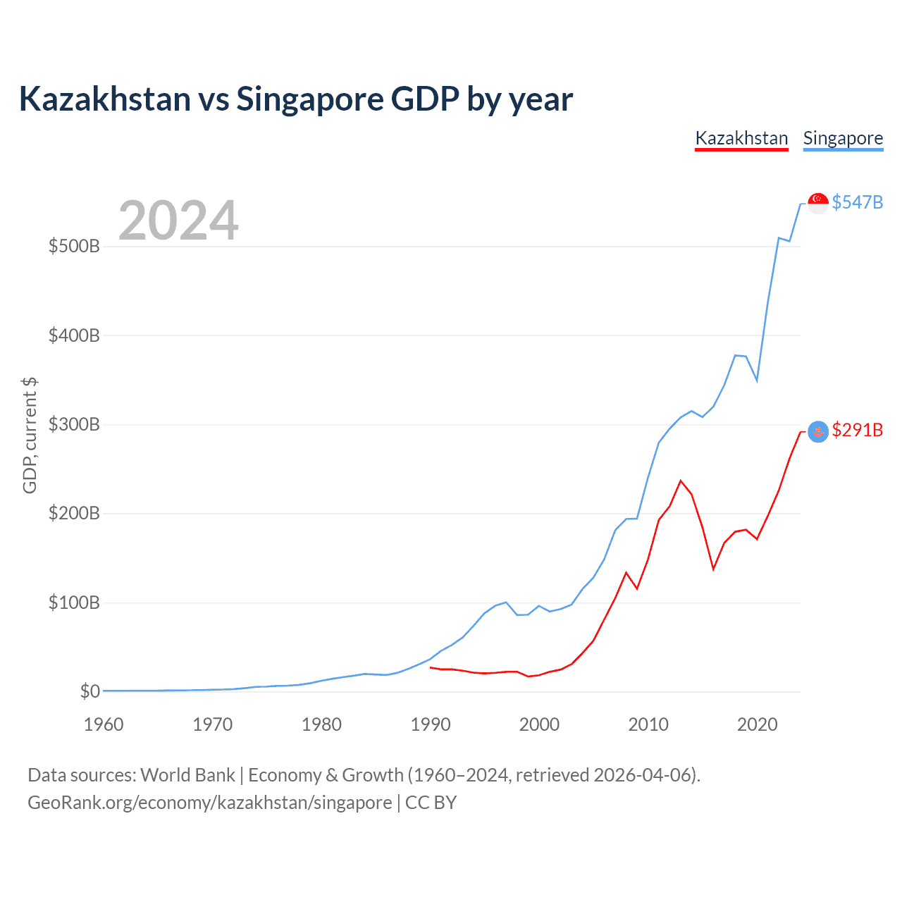 Kazakhstan vs Singapore GDP by year