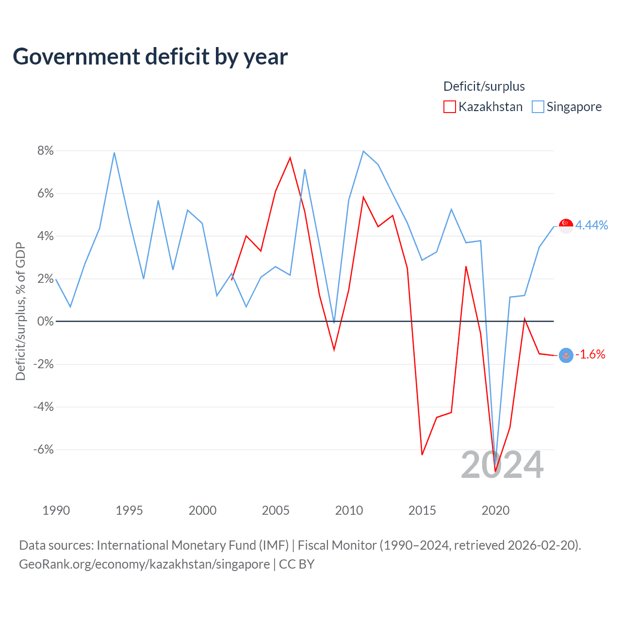 - International Monetary Fund (IMF) | Fiscal Monitor (1990–2024, retrieved 2026-02-20)