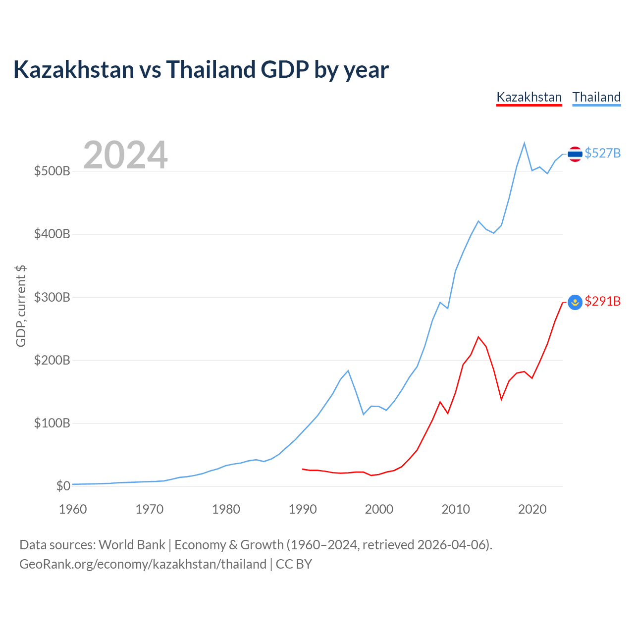 Kazakhstan vs Thailand GDP by year
