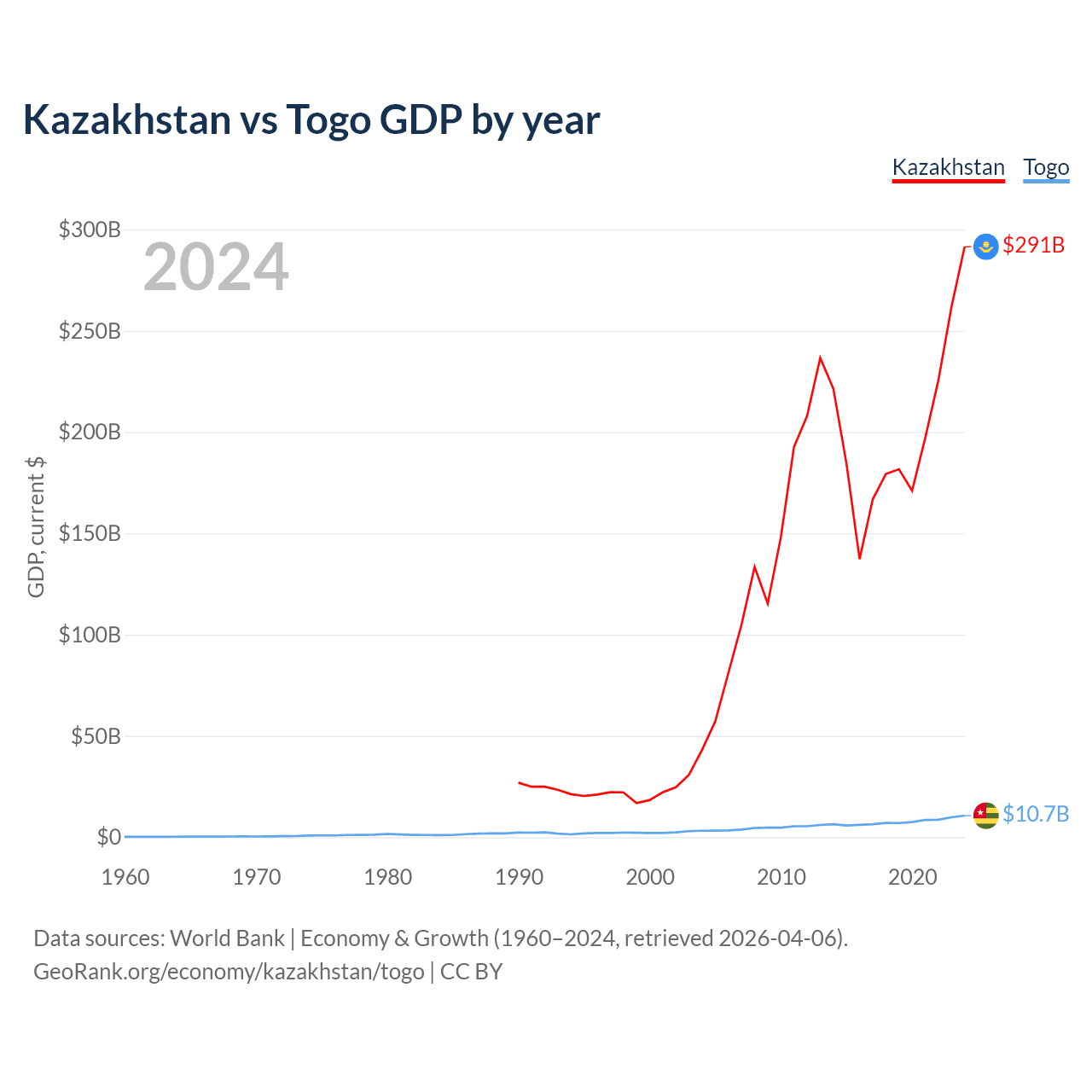Kazakhstan vs Togo GDP by year