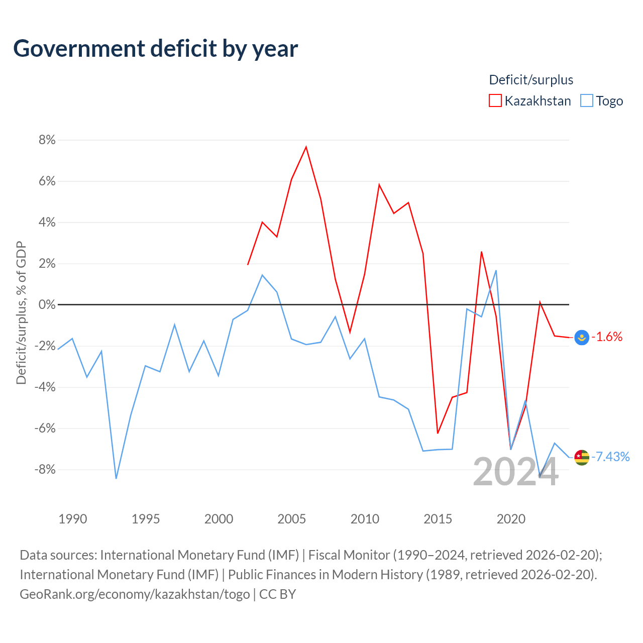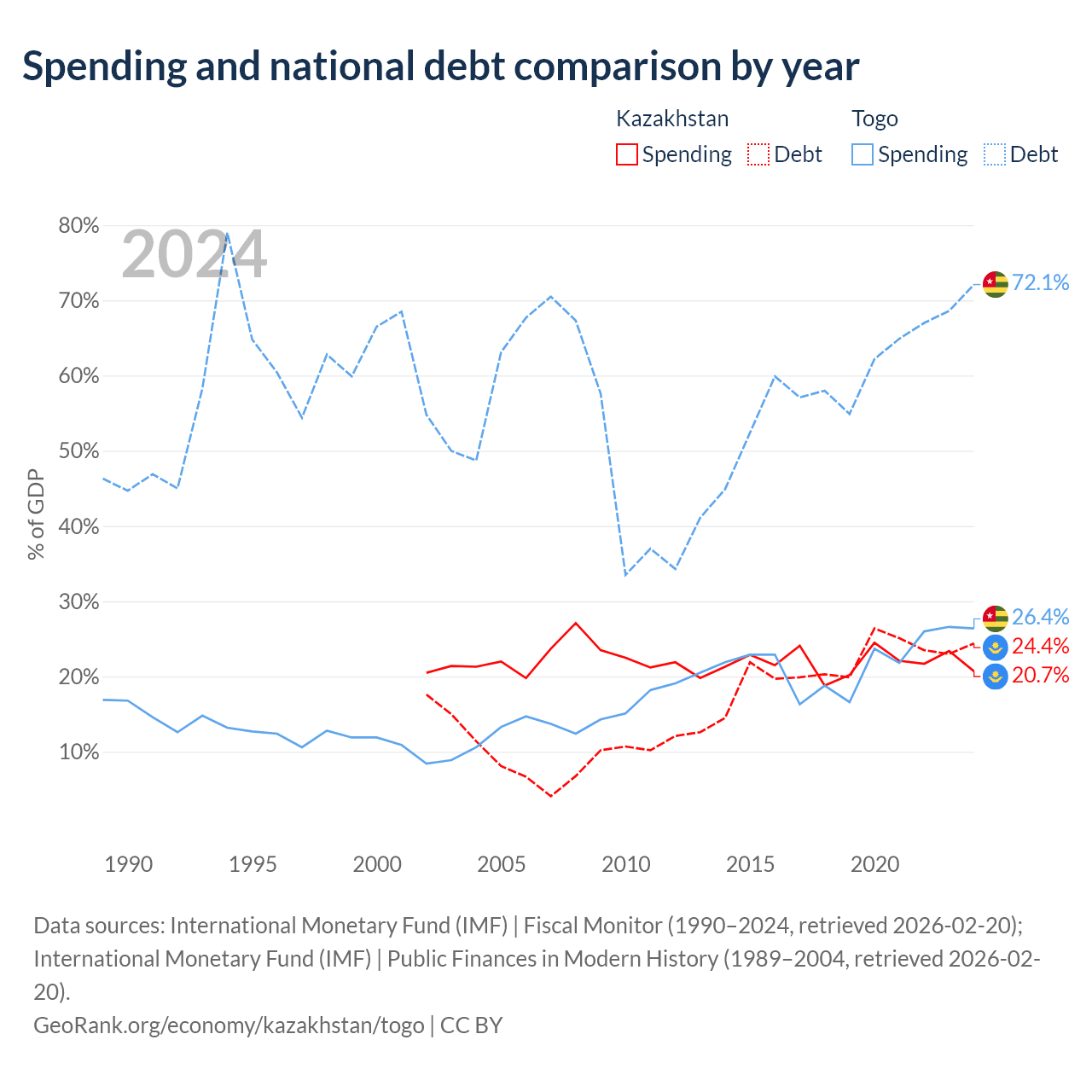 - International Monetary Fund (IMF) | Fiscal Monitor (1990–2024, retrieved 2026-02-20)