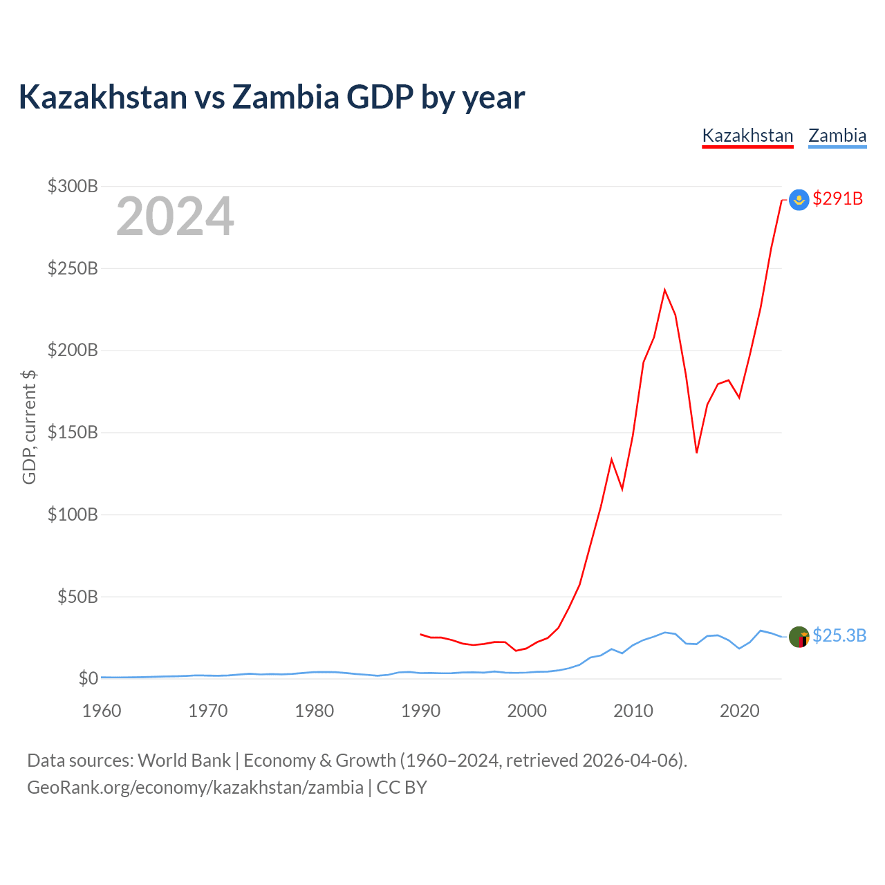 Kazakhstan vs Zambia GDP by year