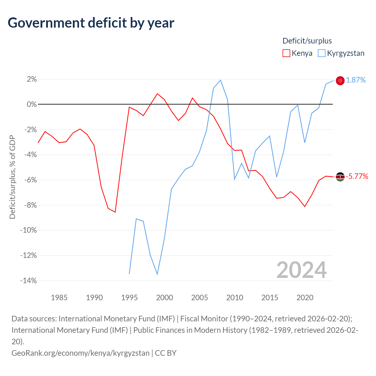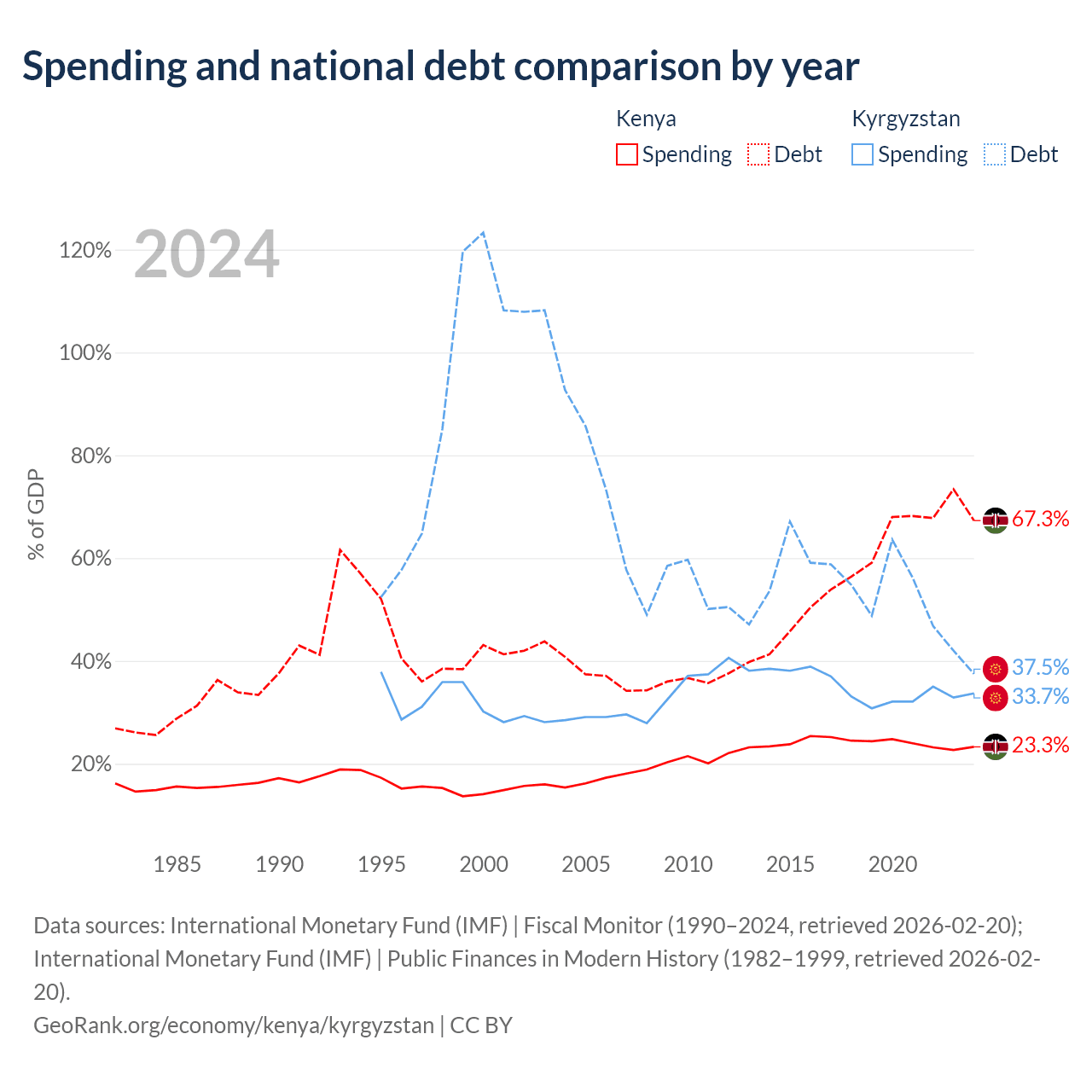 Kenya has $81B in government debt (67.3% of GDP), compared to $6.56B (37.5% of GDP) in Kyrgyzstan.