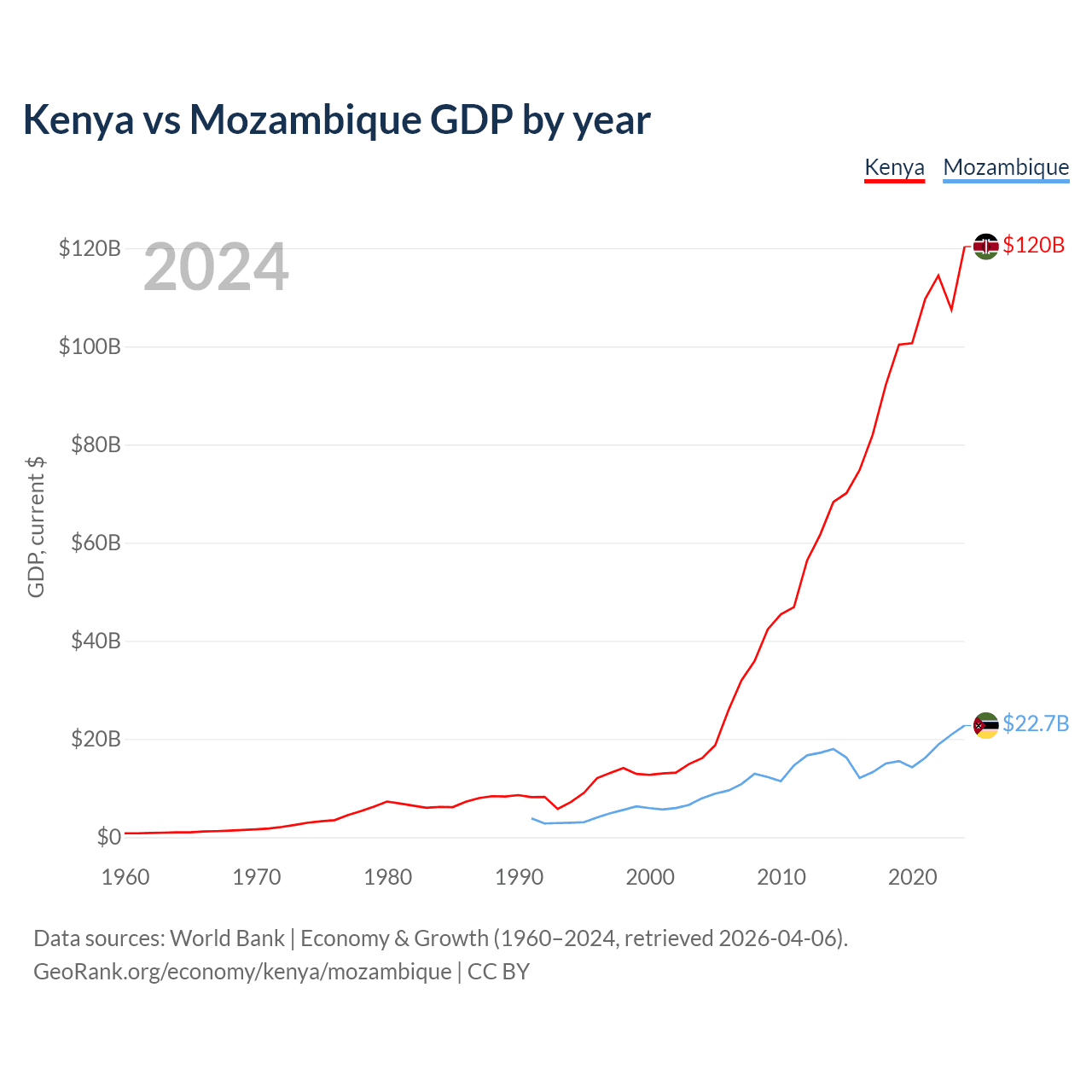 Kenya vs Mozambique GDP by year