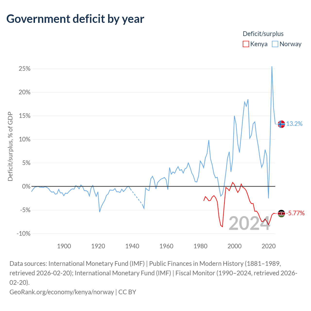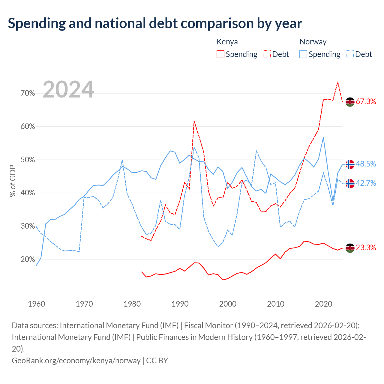 Kenya has $81B in government debt (67.3% of GDP), compared to $207B (42.7% of GDP) in Norway.