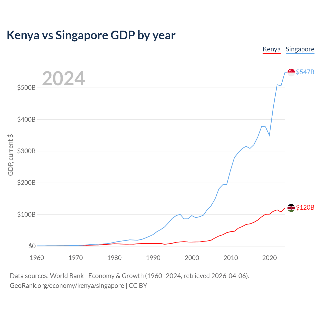 Kenya vs Singapore GDP by year