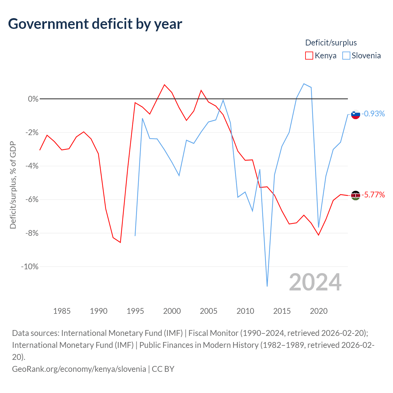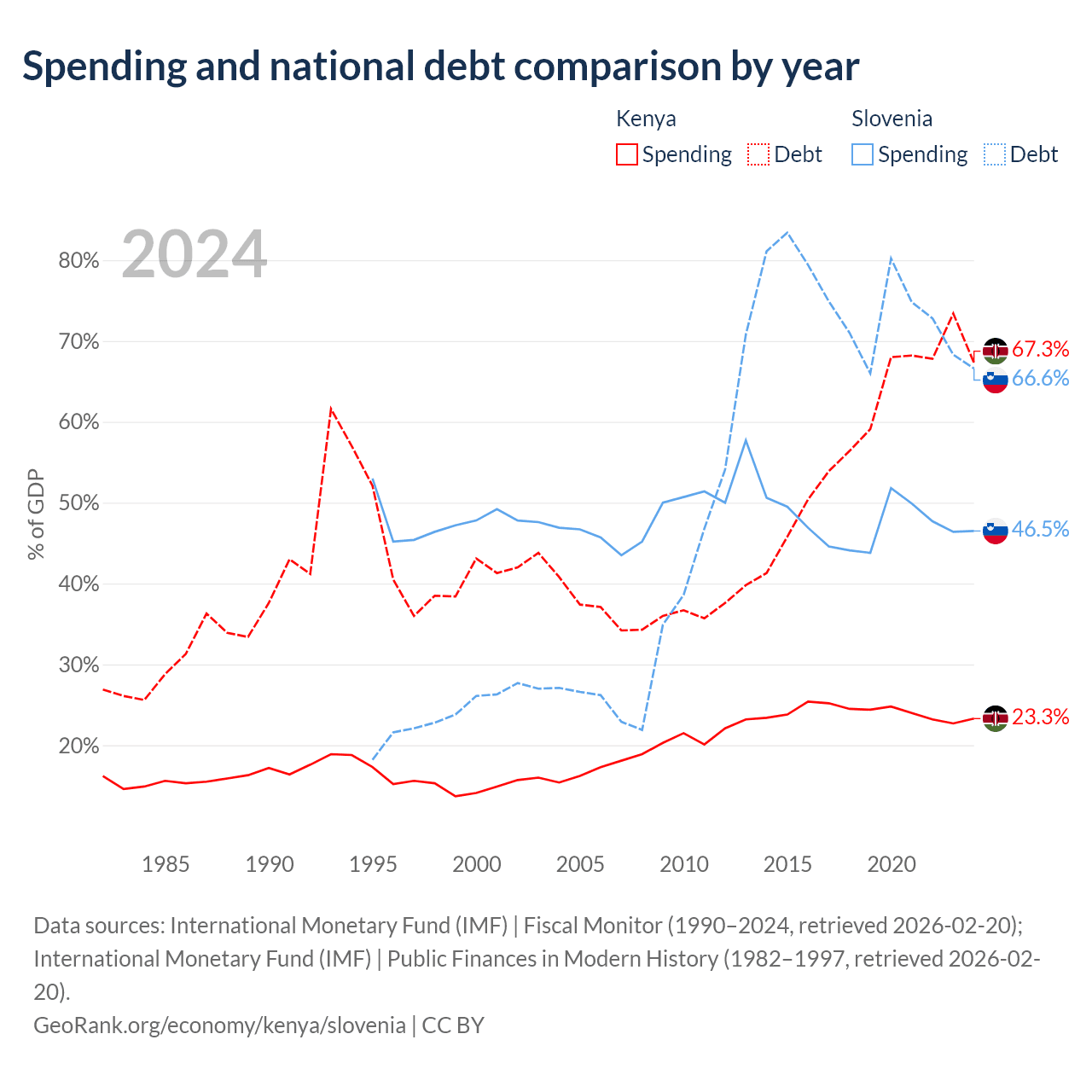 Kenya has $81B in government debt (67.3% of GDP), compared to $48.6B (66.6% of GDP) in Slovenia.