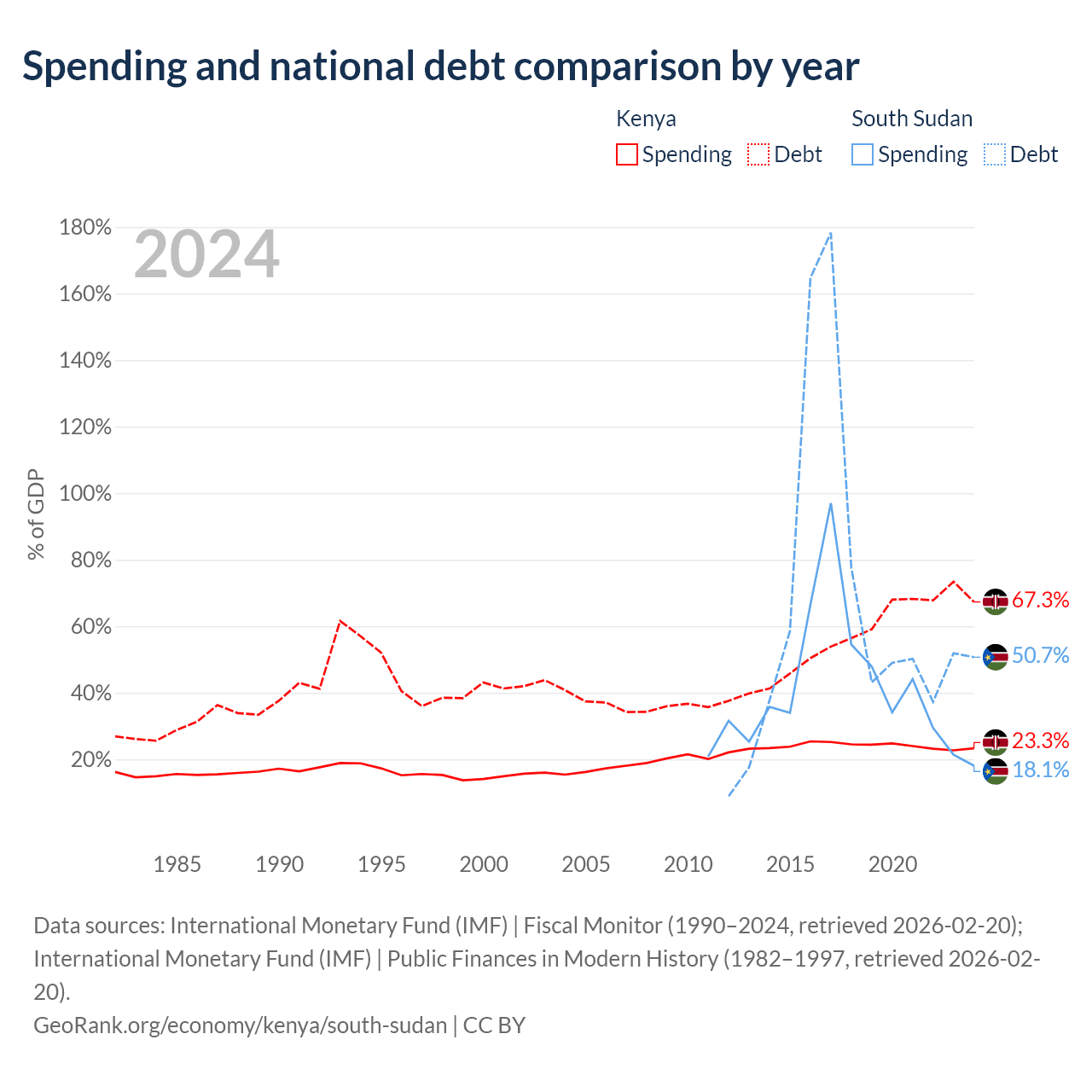 Kenya has $81B in government debt (67.3% of GDP), compared to $7.04B (50.7% of GDP) in South Sudan.