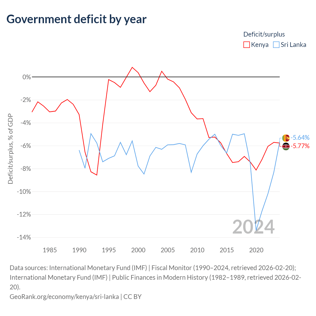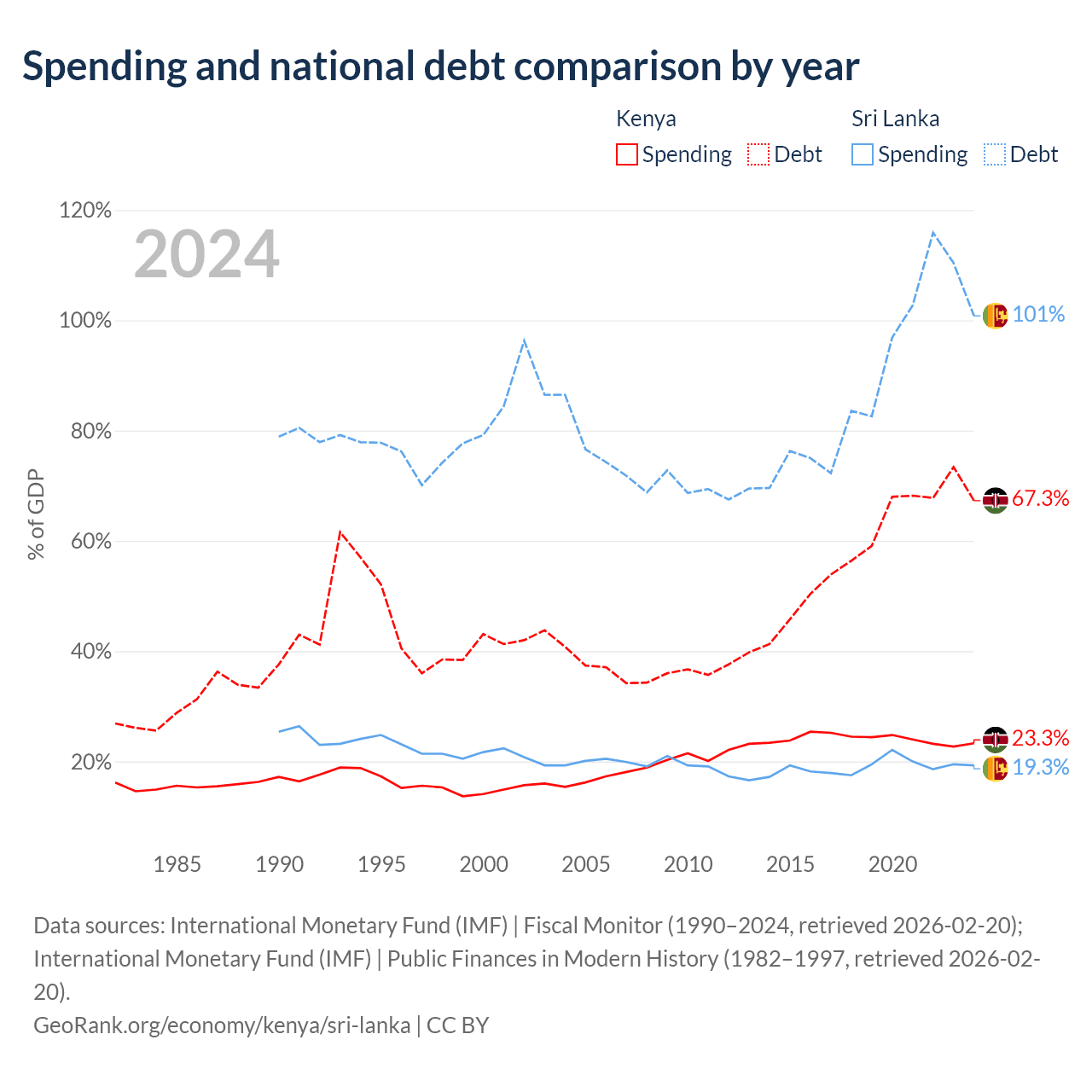 Kenya has $81B in government debt (67.3% of GDP), compared to $99.8B (100.8% of GDP) in Sri Lanka.