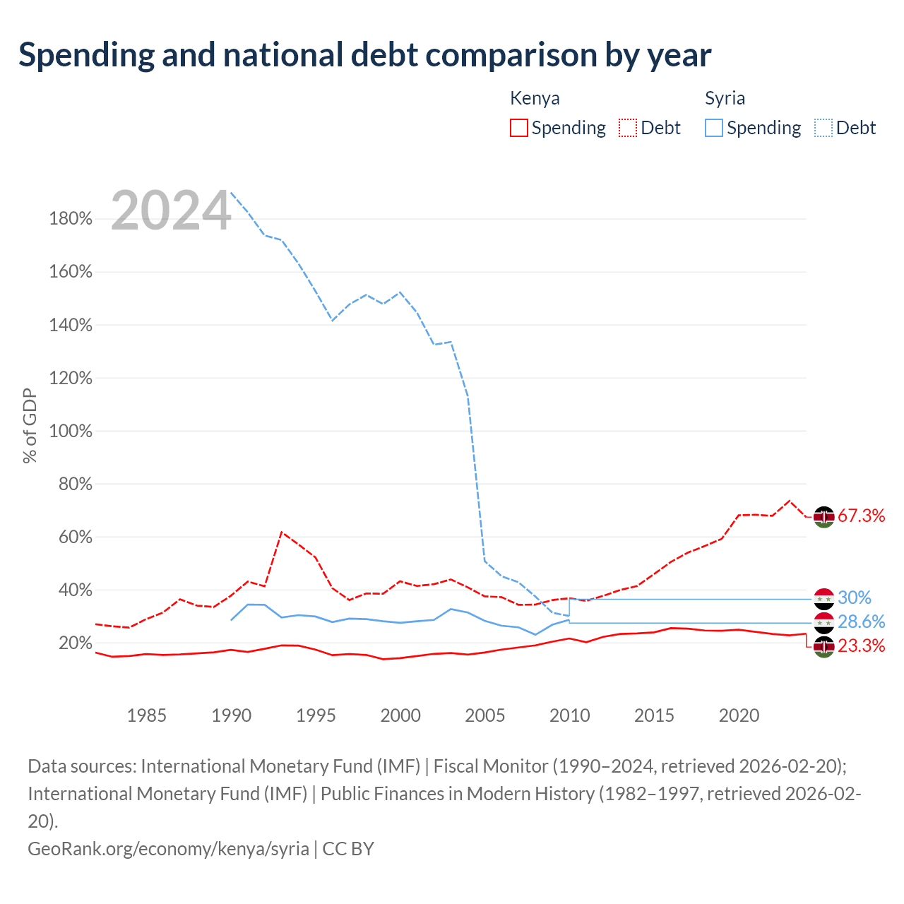 Kenya has $81B in government debt (67.3% of GDP), compared to $18.4B (30% of GDP) in Syria.
