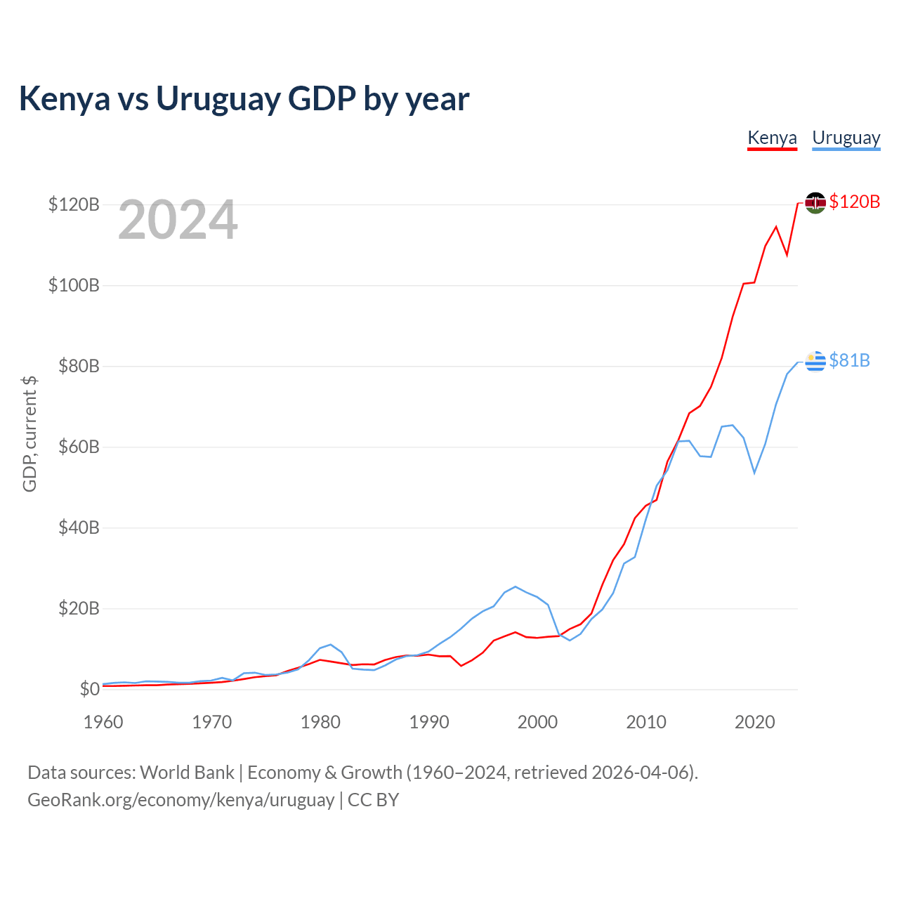 Kenya vs Uruguay GDP by year