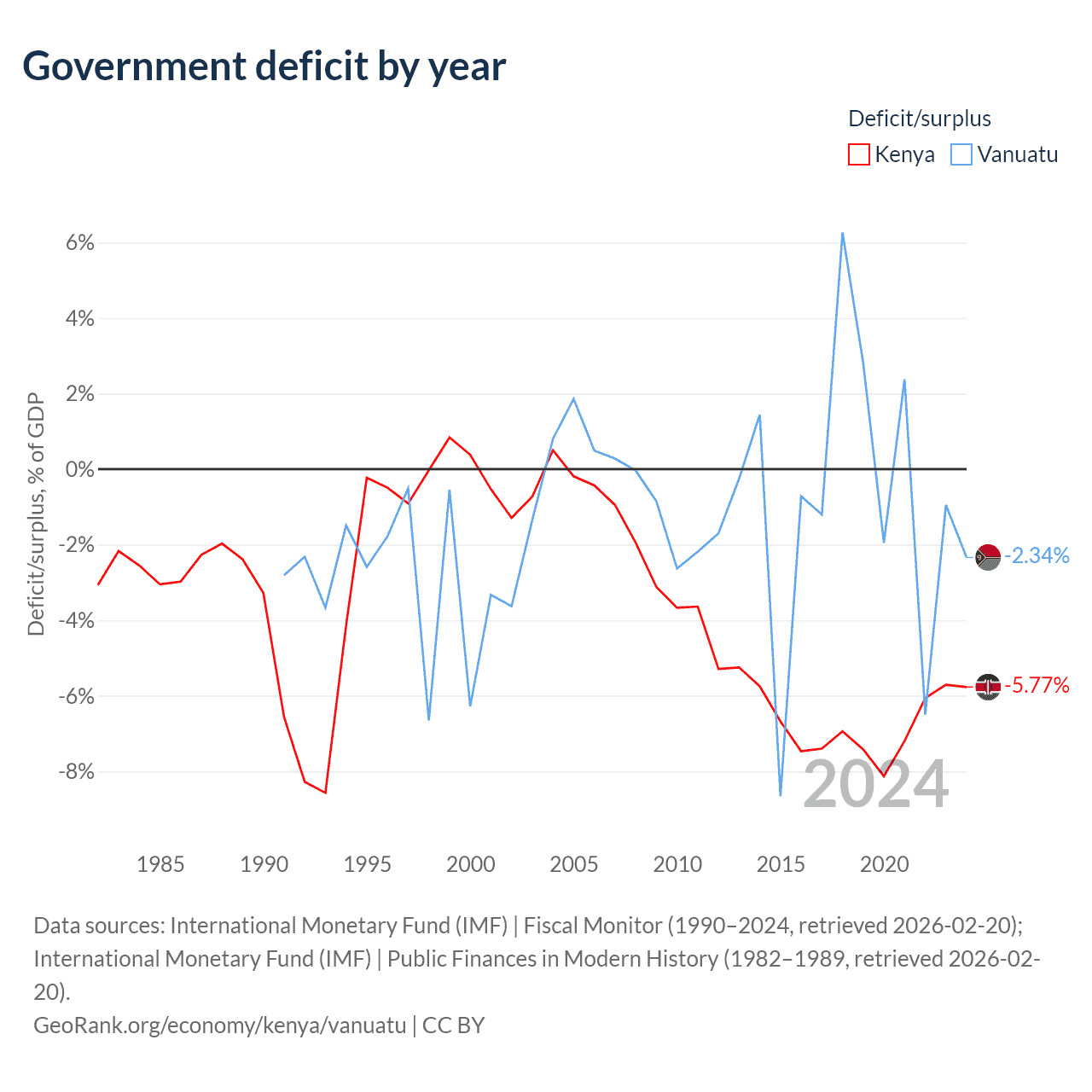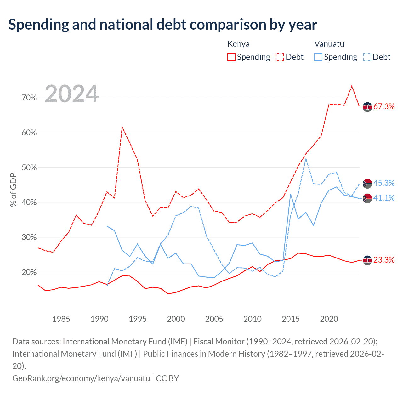 Kenya has $81B in government debt (67.3% of GDP), compared to $507M (45.3% of GDP) in Vanuatu.