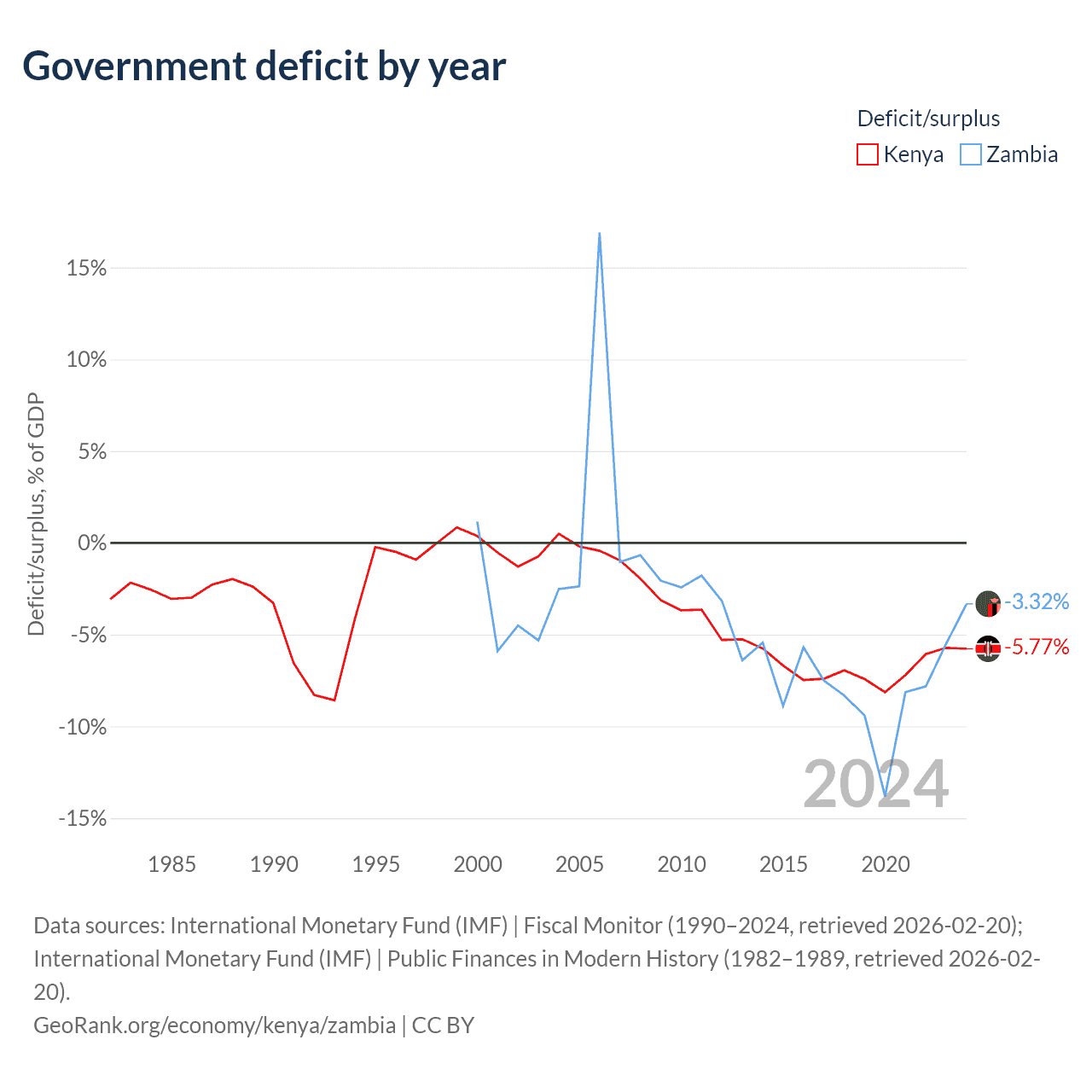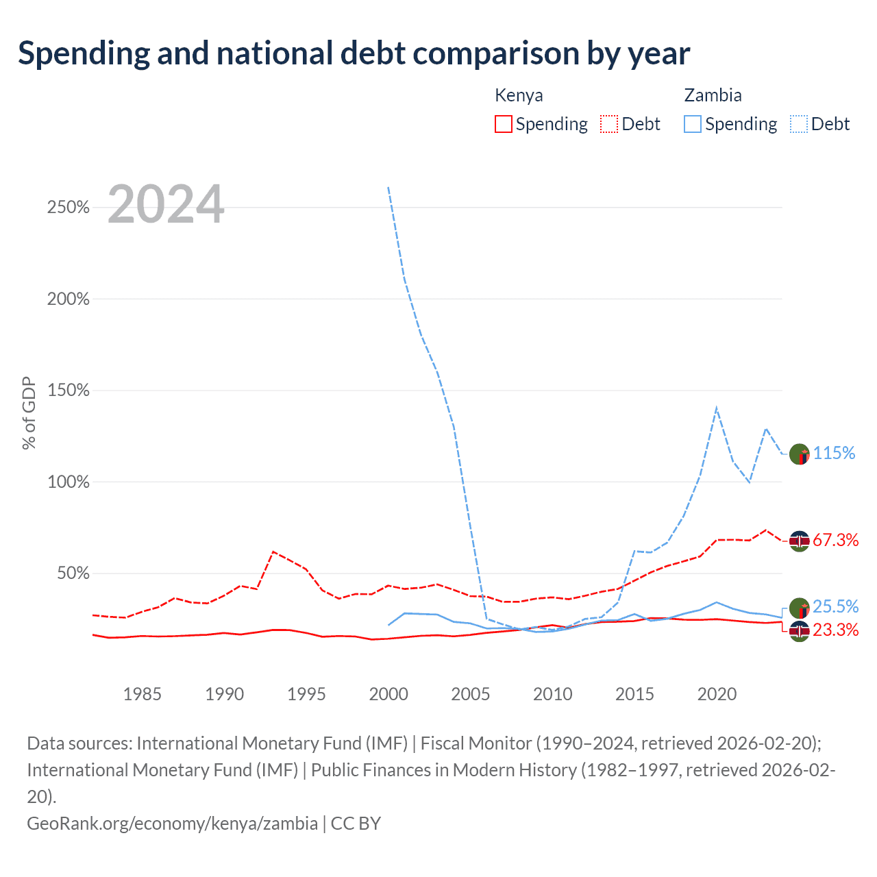 Kenya has $81B in government debt (67.3% of GDP), compared to $29.1B (114.9% of GDP) in Zambia.