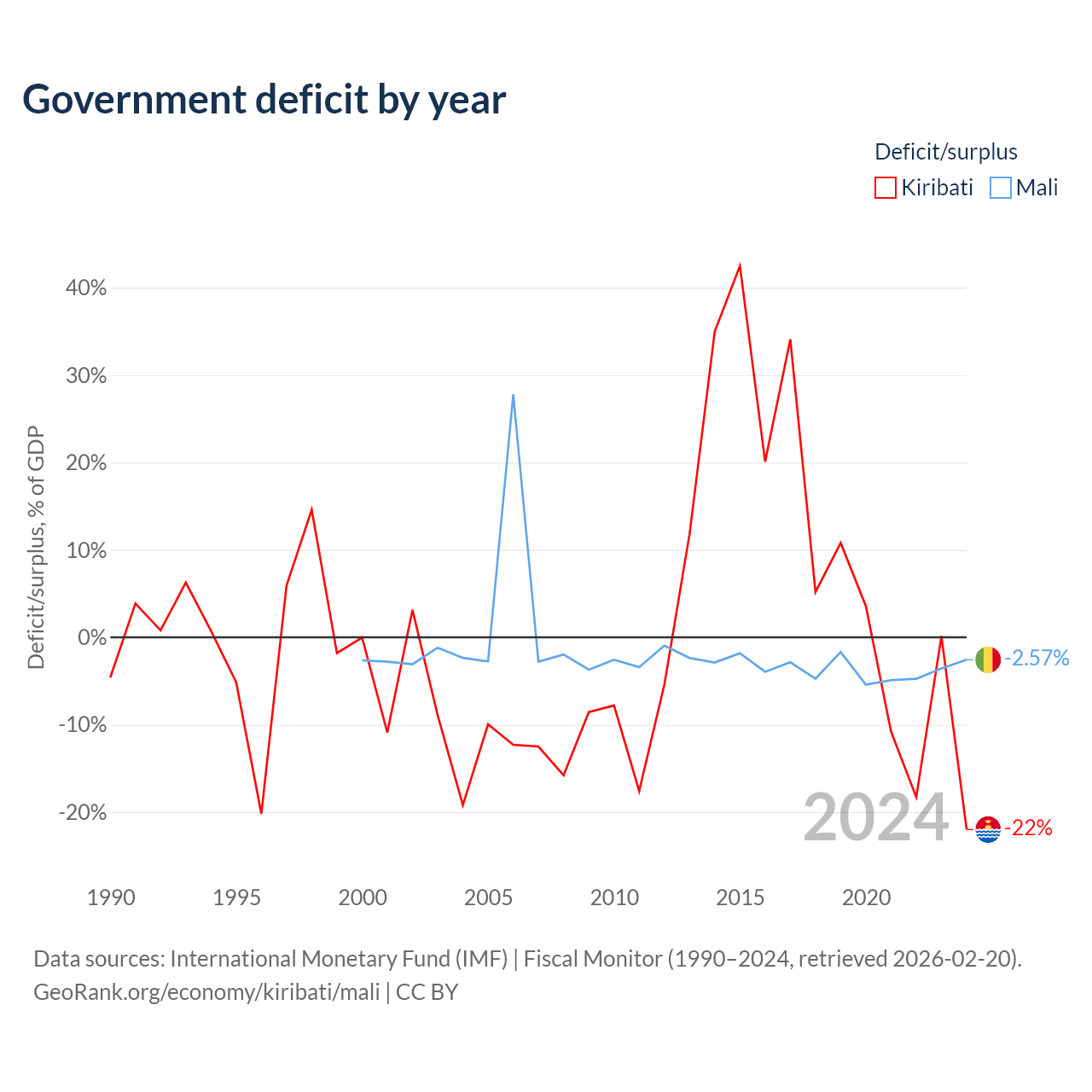 - International Monetary Fund (IMF) | Fiscal Monitor (1990–2024, retrieved 2026-02-20)