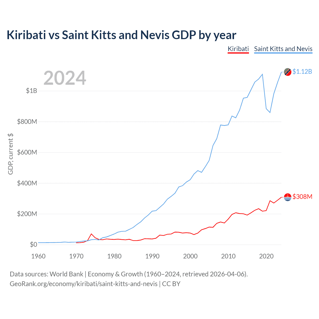 Kiribati vs Saint Kitts and Nevis GDP by year