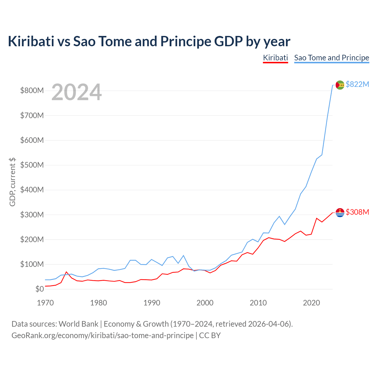 Kiribati vs Sao Tome and Principe GDP by year
