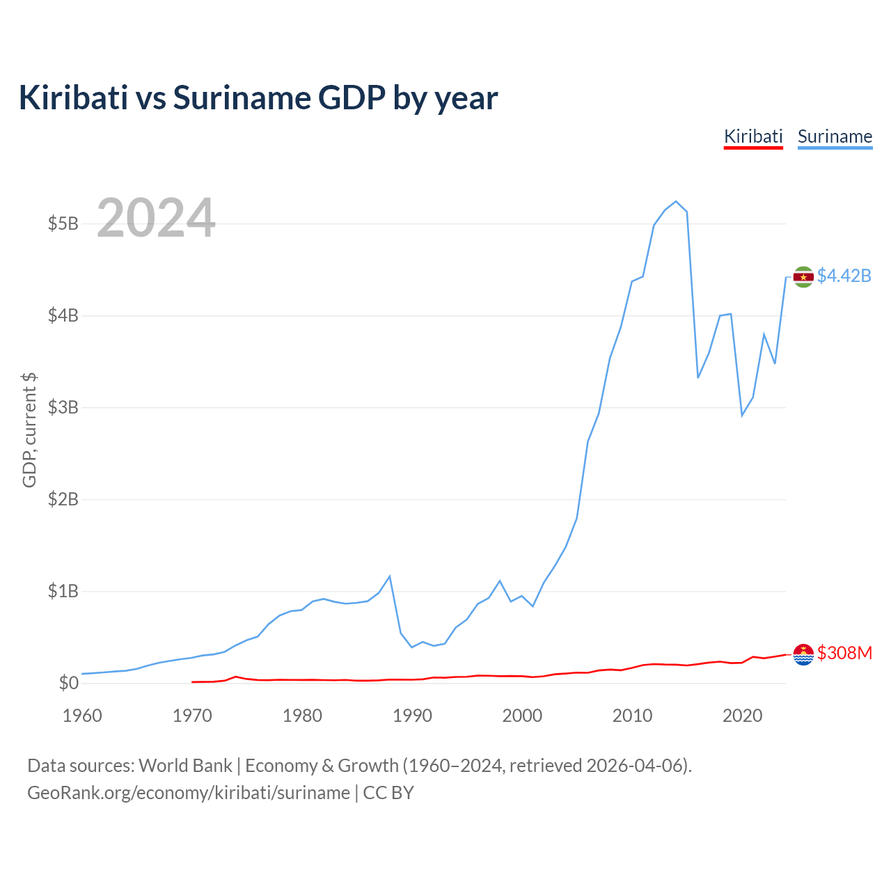 Kiribati vs Suriname GDP by year