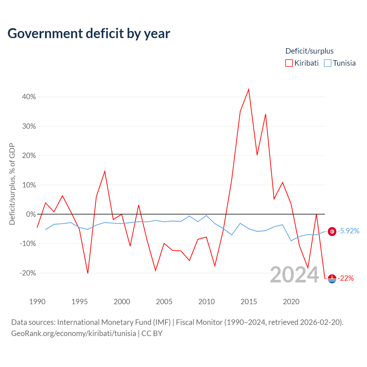 - International Monetary Fund (IMF) | Fiscal Monitor (1990–2024, retrieved 2026-02-20)