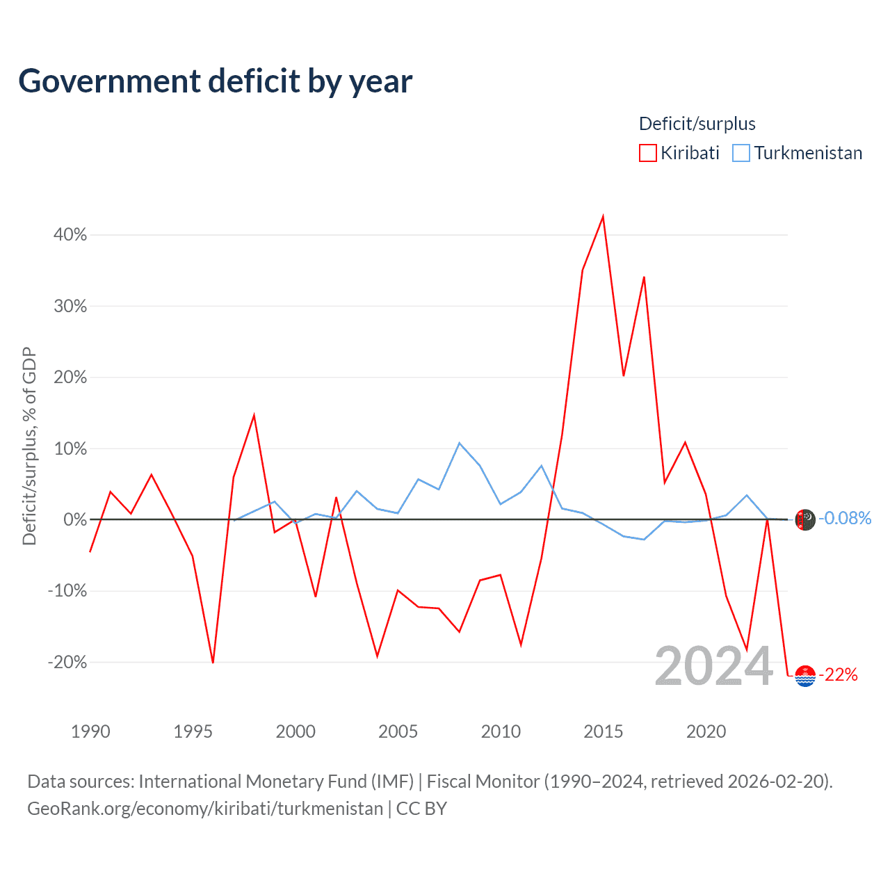 - International Monetary Fund (IMF) | Fiscal Monitor (1990–2024, retrieved 2026-02-20)