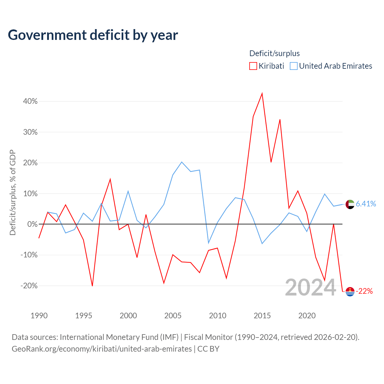 - International Monetary Fund (IMF) | Fiscal Monitor (1990–2024, retrieved 2026-02-20)