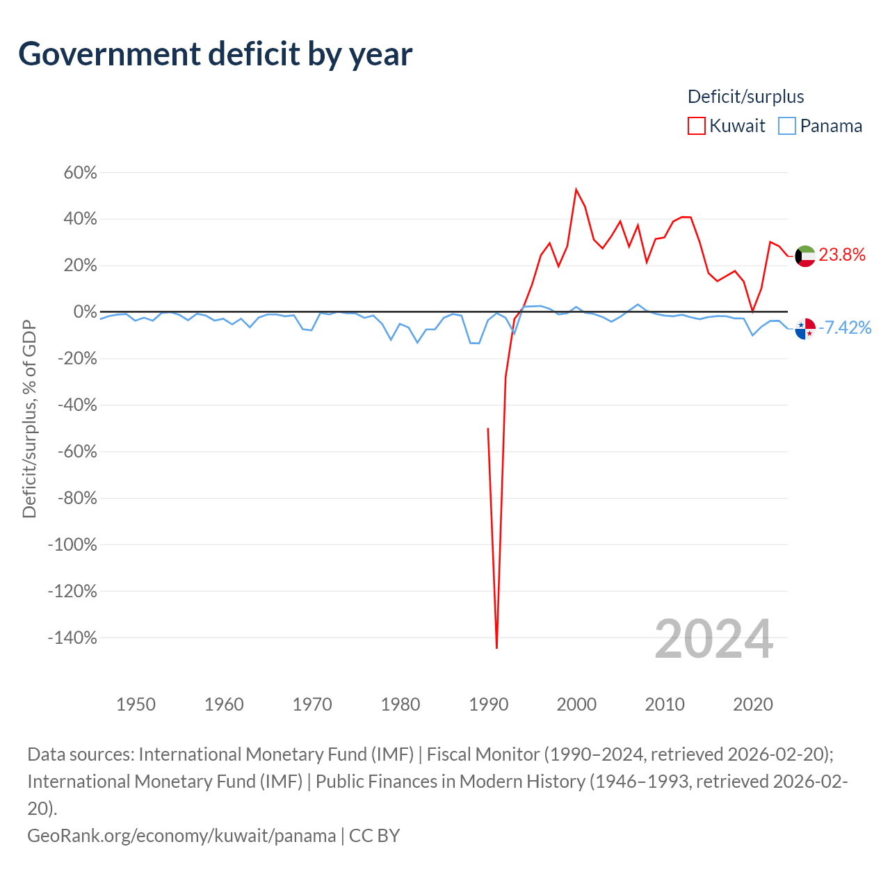 - International Monetary Fund (IMF) | Fiscal Monitor (1990–2024, retrieved 2026-02-20)