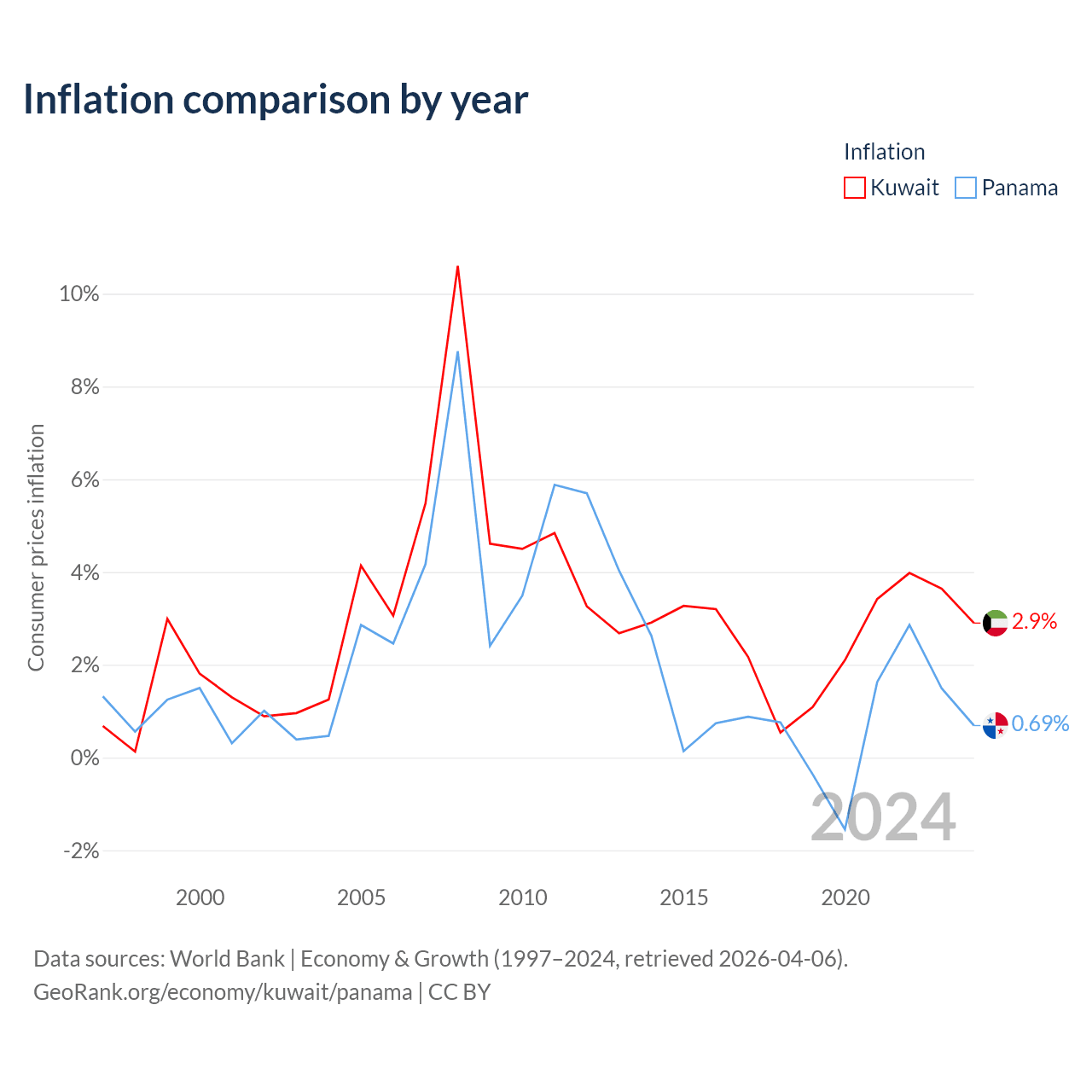 Data sources: World Bank | Economy & Growth (1960–2024, retrieved 2026-04-06).