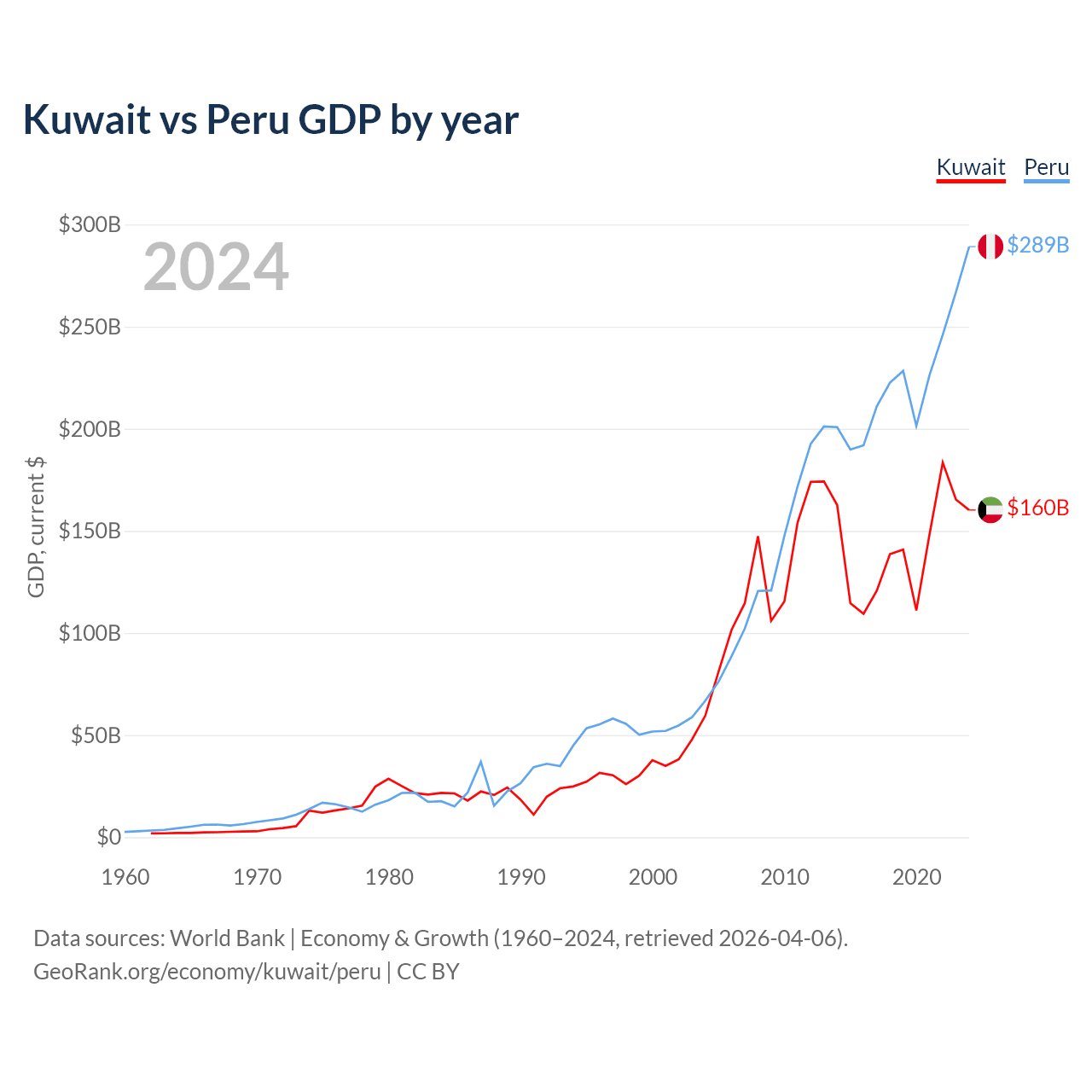 Kuwait vs Peru GDP by year
