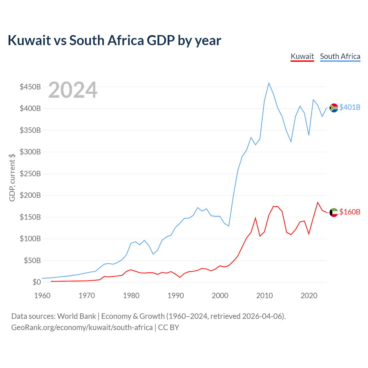 Kuwait vs South Africa GDP by year