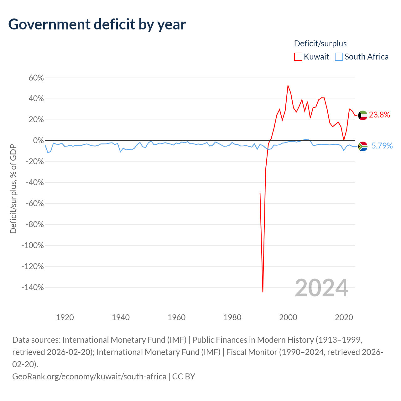 - International Monetary Fund (IMF) | Fiscal Monitor (1990–2024, retrieved 2026-02-20)
