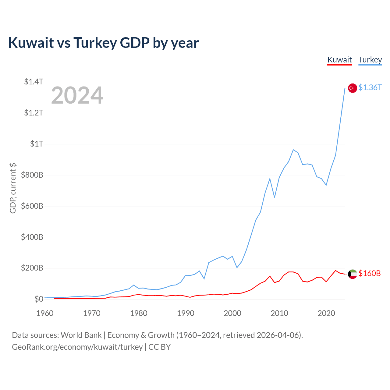 Kuwait vs Turkey GDP by year