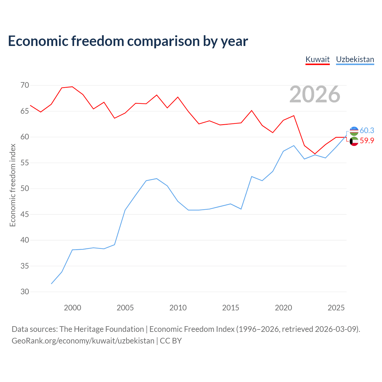 Data sources: The Heritage Foundation | Economic Freedom Index (1996–2026, retrieved 2026-03-09).