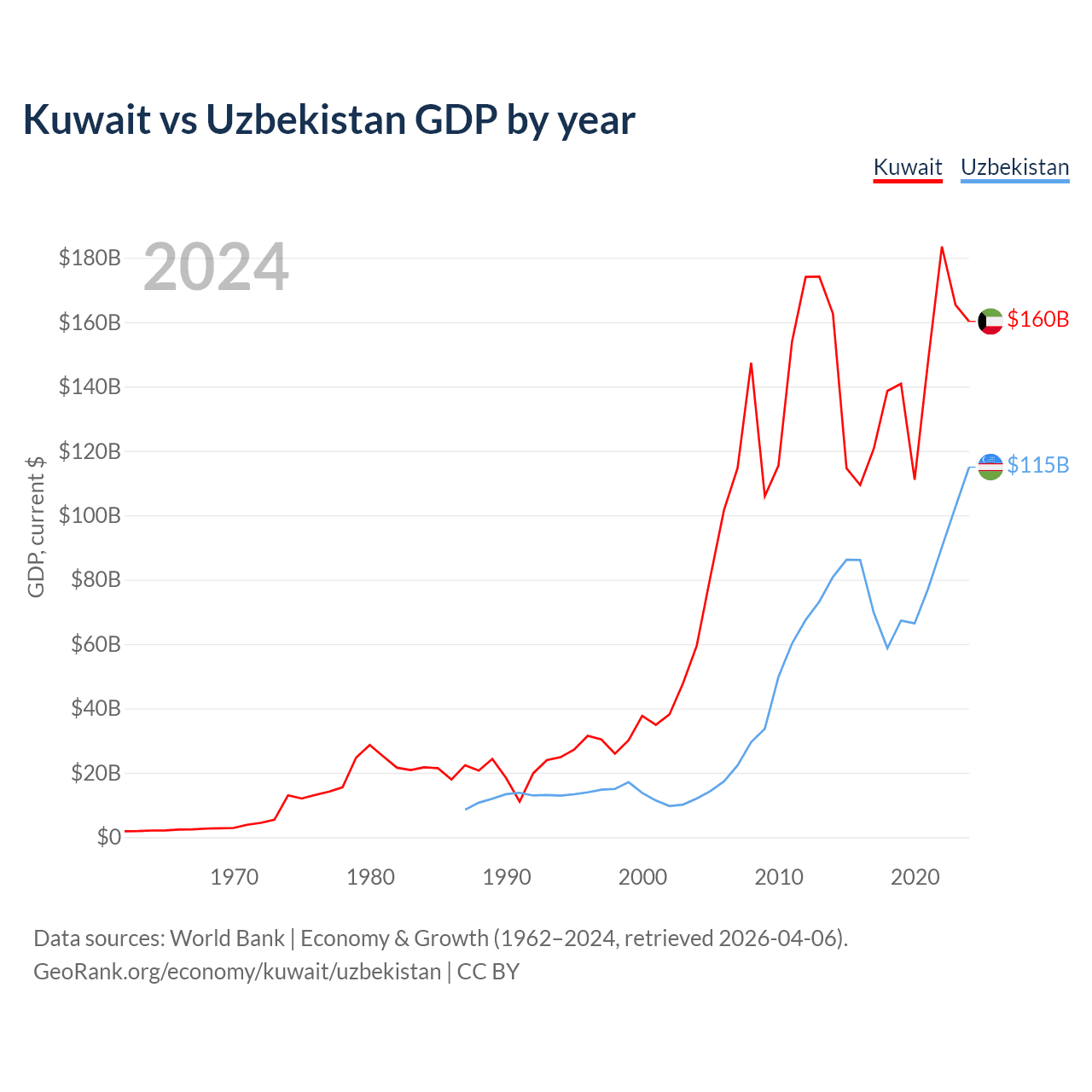 Kuwait vs Uzbekistan GDP by year