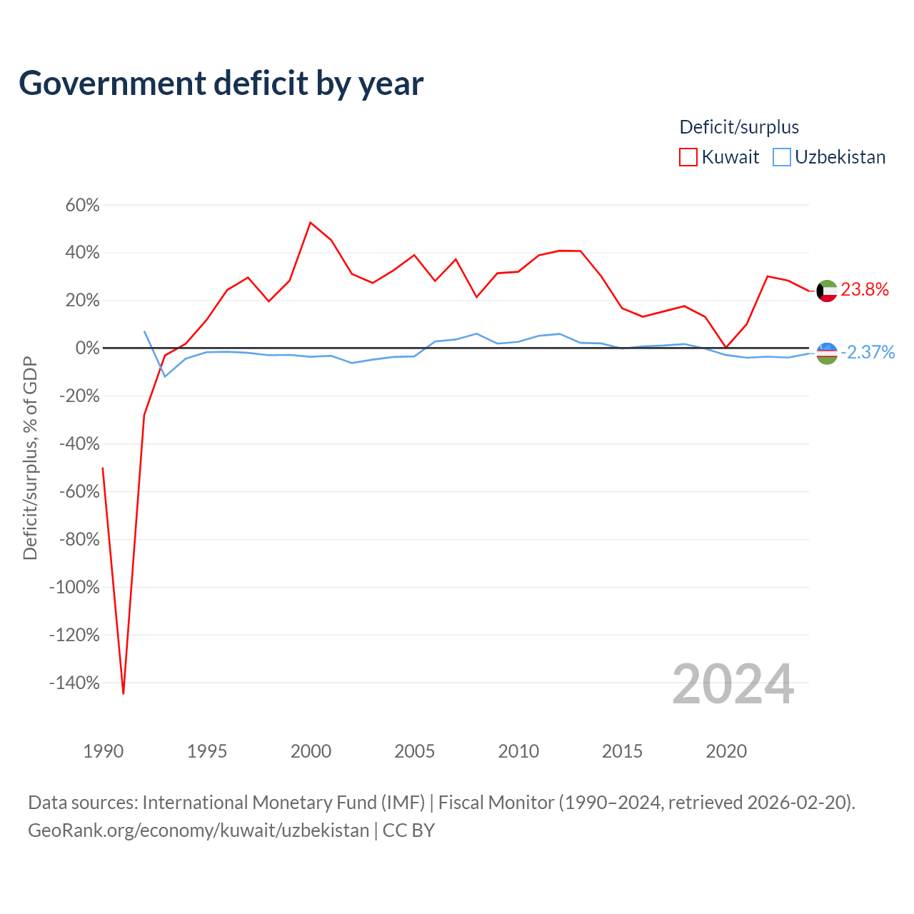 - International Monetary Fund (IMF) | Fiscal Monitor (1990–2024, retrieved 2026-02-20)