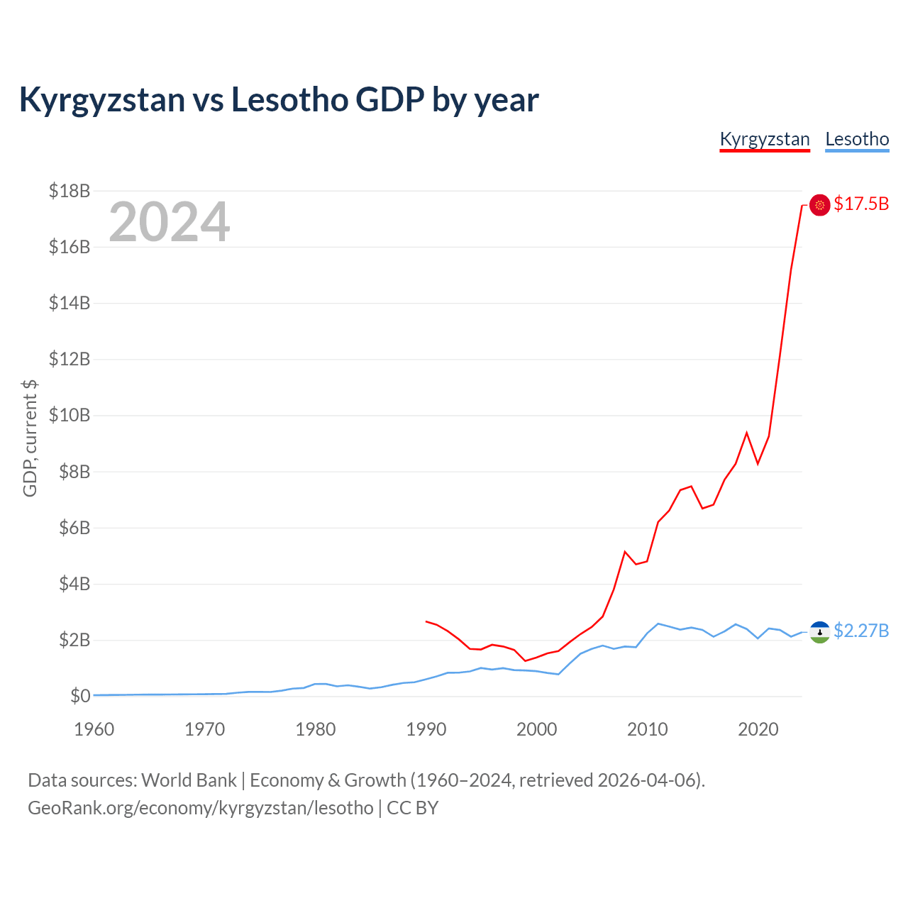 Kyrgyzstan vs Lesotho GDP by year