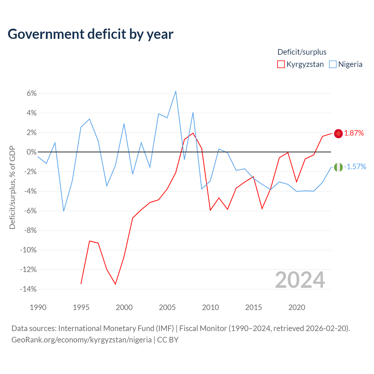 - International Monetary Fund (IMF) | Fiscal Monitor (1990–2024, retrieved 2026-02-20)