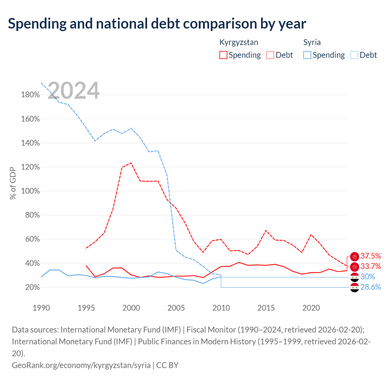 Kyrgyzstan has $6.56B in government debt (37.5% of GDP), compared to $18.4B (30% of GDP) in Syria.