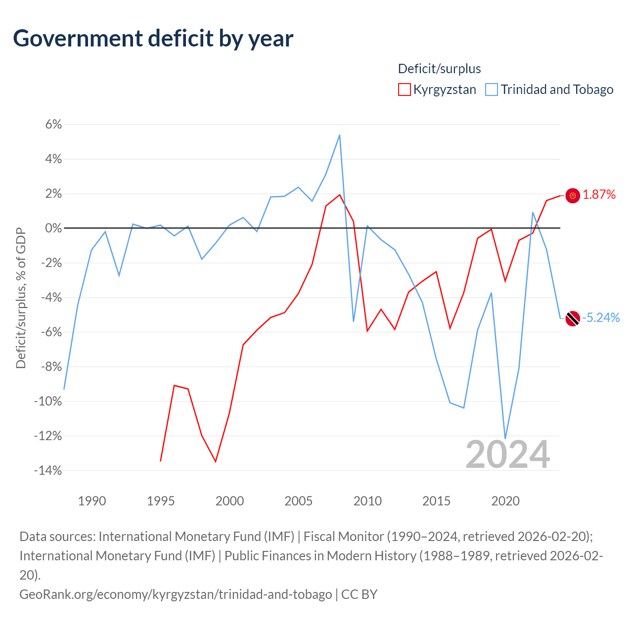 - International Monetary Fund (IMF) | Fiscal Monitor (1990–2024, retrieved 2026-02-20)