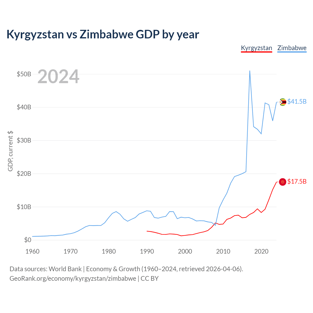 Kyrgyzstan vs Zimbabwe GDP by year