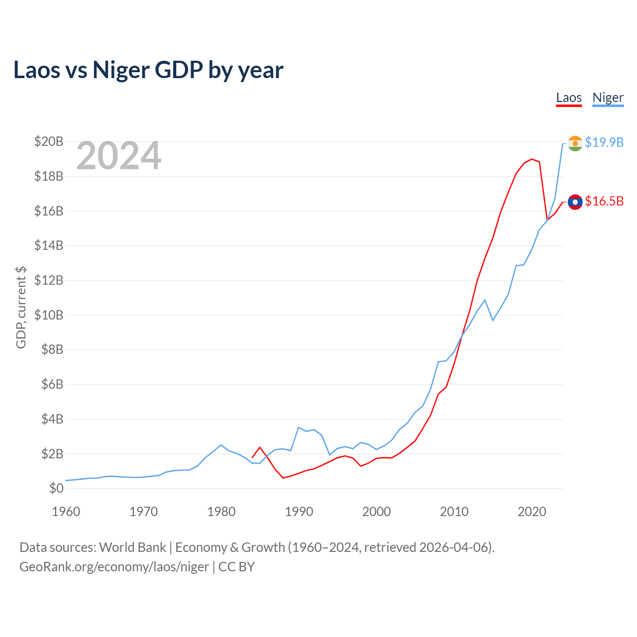 Laos vs Niger GDP by year