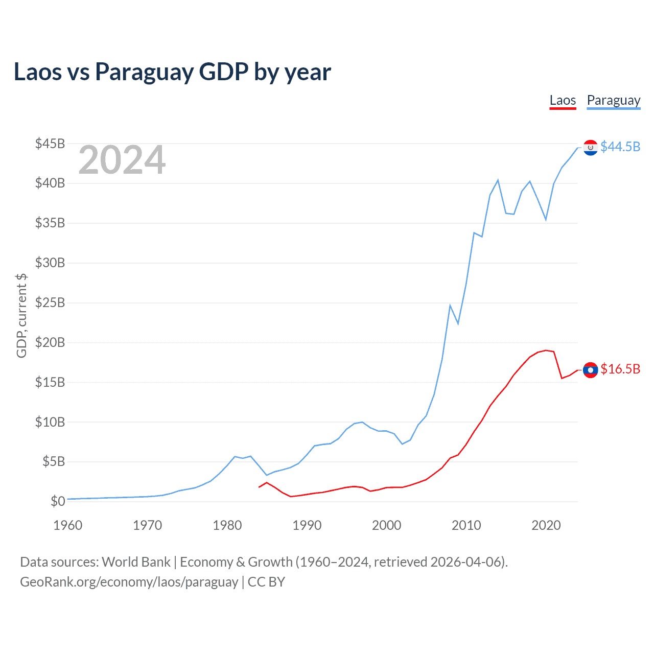 Laos vs Paraguay GDP by year