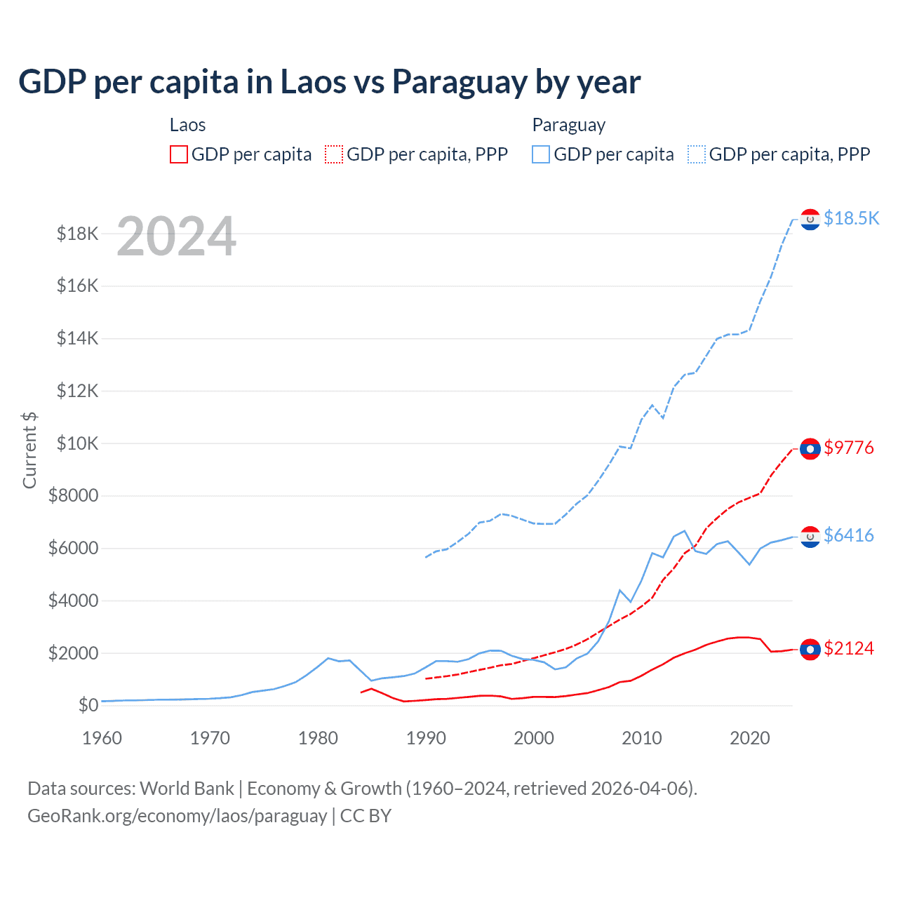 Data sources: World Bank | Economy & Growth (1960–2024, retrieved 2026-04-06).