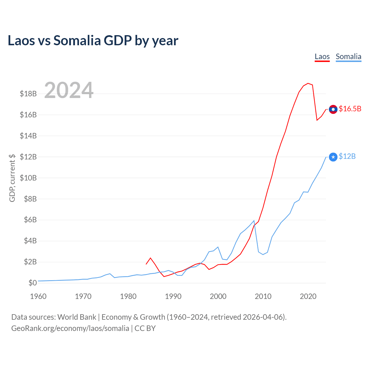 Laos vs Somalia GDP by year
