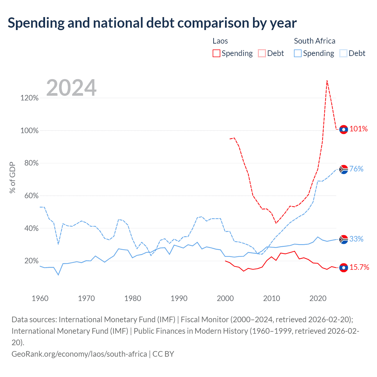 Laos has $16.6B in government debt (100.5% of GDP), compared to $305B (76% of GDP) in South Africa.