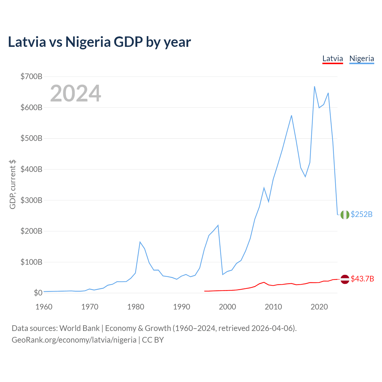 Latvia vs Nigeria GDP by year