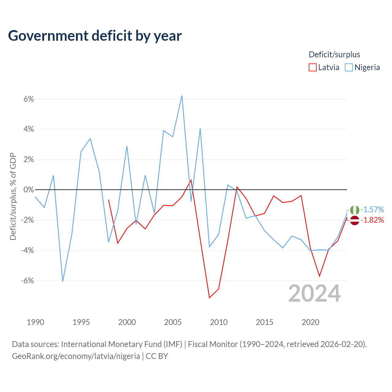 - International Monetary Fund (IMF) | Fiscal Monitor (1990–2024, retrieved 2026-02-20)