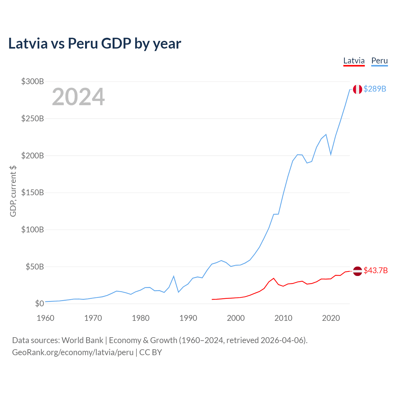 Latvia vs Peru GDP by year