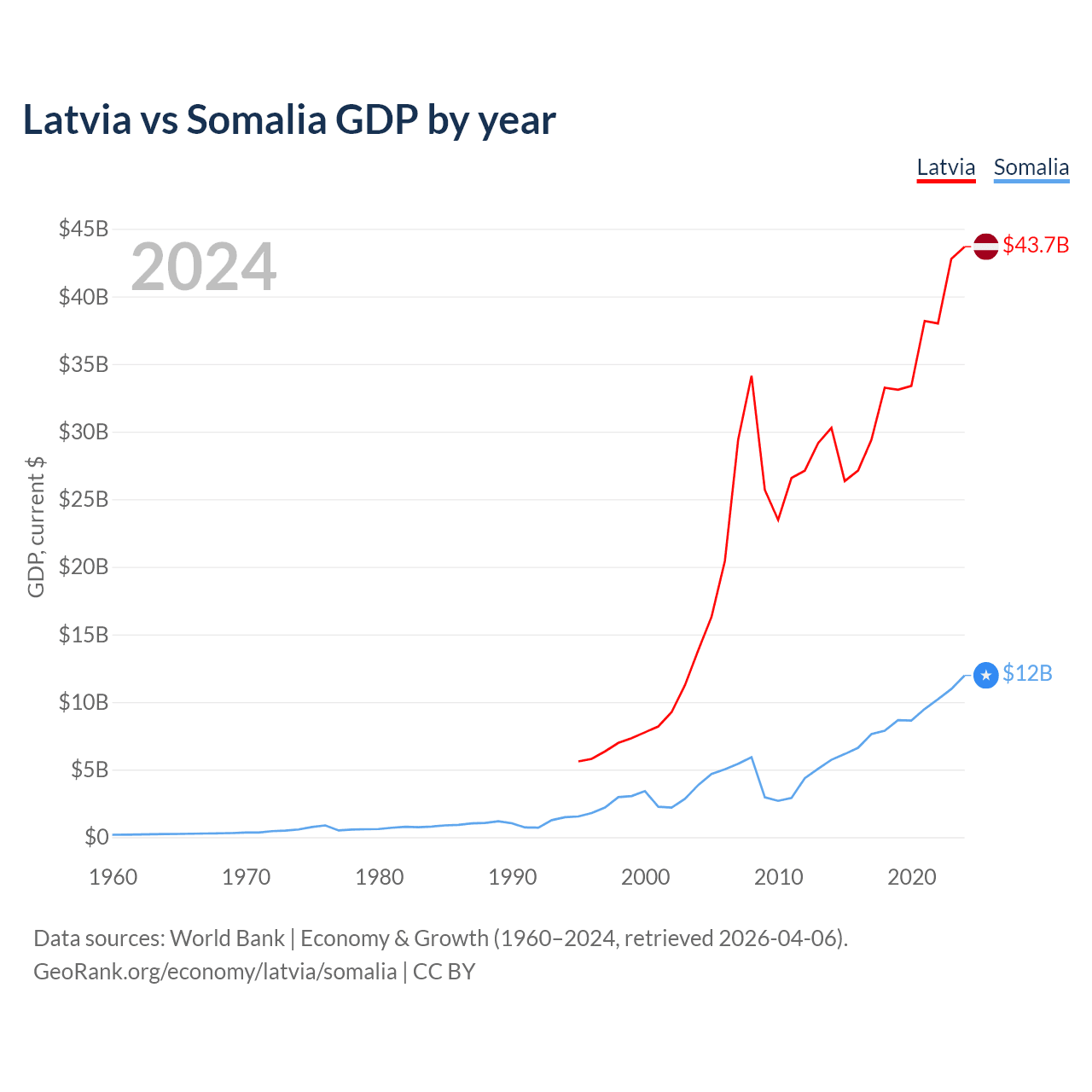 Latvia vs Somalia GDP by year